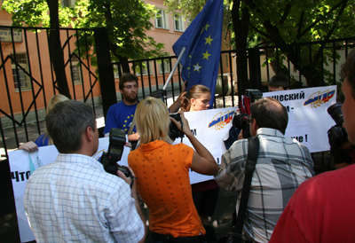 Вообще-то в том, что нам разрешат данное мероприятие, уверенности не было до последнего. В итоге разрешили, но всего на полчаса и всего на пять человек. Еще бы – пикетировать офис движения "Наши" - это не абы что, видимо, а сильный политический жест.