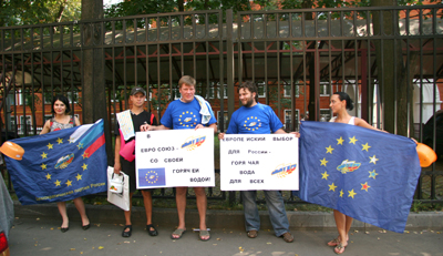 Сегодня, 23 августа, Демократическая партия России провела напротив здания Федерального Агентства по строительству и жилищно-коммунальному хозяйству пикет против долговременного отключения горячей воды в Москве и других городах России.