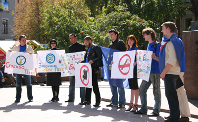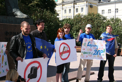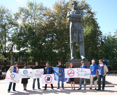 В акции приняли участие более 15 активистов Московского регионального отделения. В руках активисты держали плакаты, с изображениями, символизирующими опасные повороты на историческом пути России: валенками, топором, а также плакаты с символами европейского выборы страны и благоприятного вектора развития: деловой костюм, компьютерные символы.