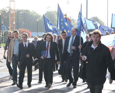 Участники Демократического Конгресса прошли шествием мимо здания Еврокомиссии до отеля Crown Plaza...