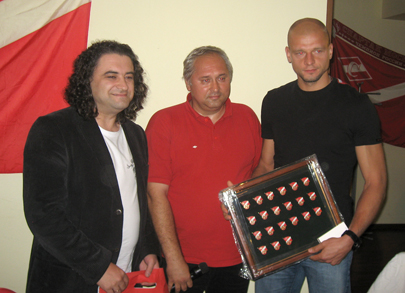 Владимир Гришин и Андрей Богданов вручили подарки от фан-клуба как игрокам, так и самым активным болельщикам.