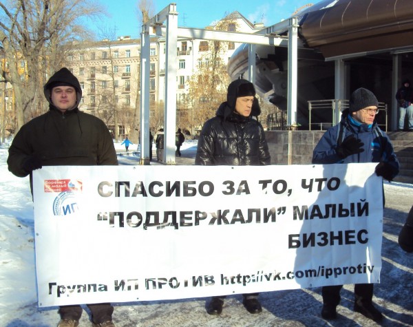 Активисты петербургского отделения "Демократического выбора" приняли участие в акции протеста петербургских индивидуальных предпринимателей против повышения налогов с января 2013 года (подробнее о ситуации - ). На фото - один из лидеров петербургского "Демвыбора" Илья Львов (крайний слева):