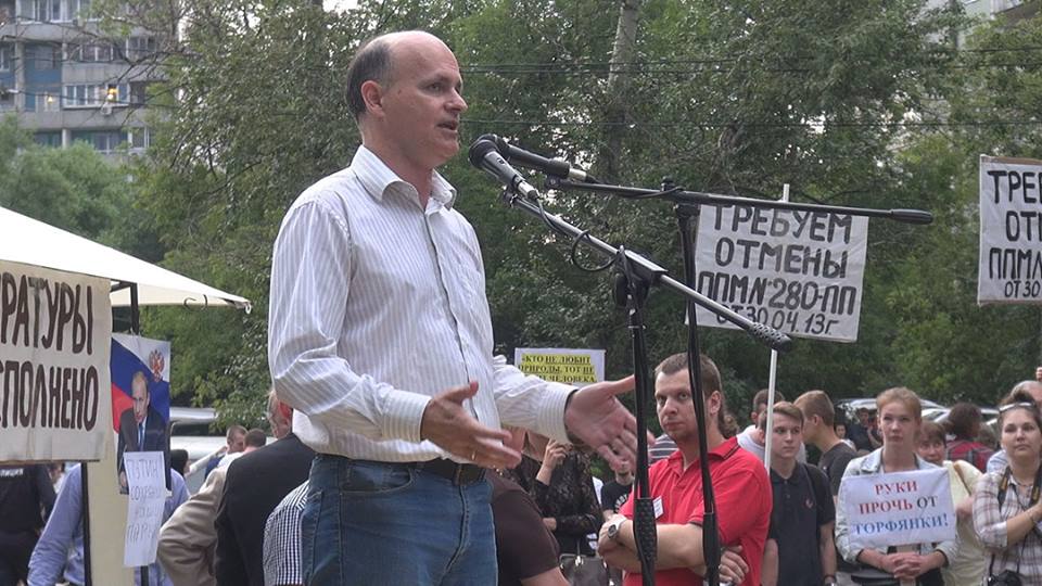 Пикетировал публичные слушания по застройке Тушинского аэродрома, которые в итоге были нагло сфальсифицированы властями.