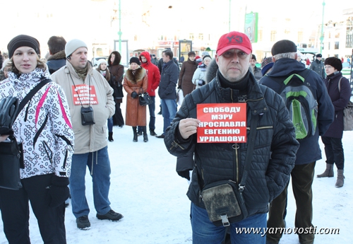 1 декабря в Ярославле прошел митинг в поддержку арестованного мэра города Евгения Урлашова, организованный активисткой "Демократического выбора" Ариной Олейниковой с коллегами. Напомним, что в пятницу лидеры "Демвыбора" выступили с поручительствами за Евгения Урлашова в Басманном суде. На воскресном митинге в Ярославле выступил член Федерального политсовета партии, лидер молодежной организации "Демвыбора" Олег Степанов, в числе других выступавших были также депутат муниципалитета Ярославля Анатолий Каширин ("Справедливая Россия") и депутат Ярославской областной Думы Эльхан Мардалиев (КПРФ).