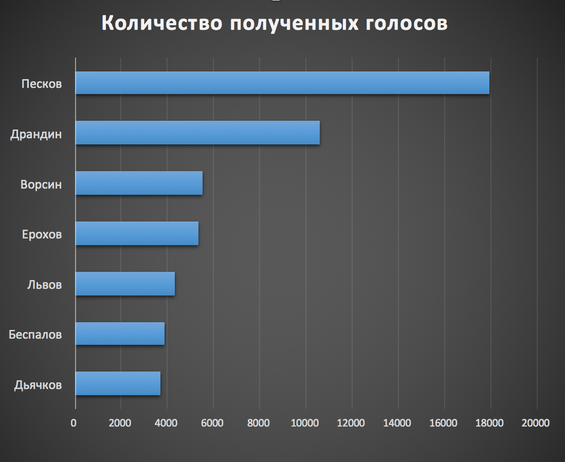 Вся команда кандидатов, которых поддерживал активист Владимир Милов получила суммарно меньше голосов, чем набрали и . 22771 против 28525.