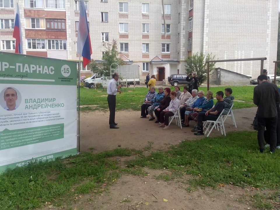 Читайте краткий репортаж о , где мы помогаем избирательной кампании Демократической коалиции. Члены "Демвыбора" помогали организовывать встречи с избирателями кандидату от Демкоалиции, бывшему вице-губернатору Костромской области Владимиру Андрейченко, известному своей бескомпромиссной борьбой с коррупцией и с бывшим губернатором Слюняевым. О поездке пишет исполнительный директор "Демвыбора" Петр Милованов: , .