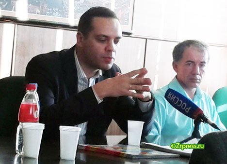 На фото: Владимир Милов и Юрий Кучин на пресс-конференции во Владивостоке
