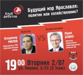 Завтра, 2 июля, лидер "Демократического выбора" Владимир Милов выступит в политических дебатах в Ярославле против члена партии "Единая Россия", директора департамента территориального развития Ярославской области и бывшего мэра Ростова Великого Юрия Бойко (подробности): Подробнее