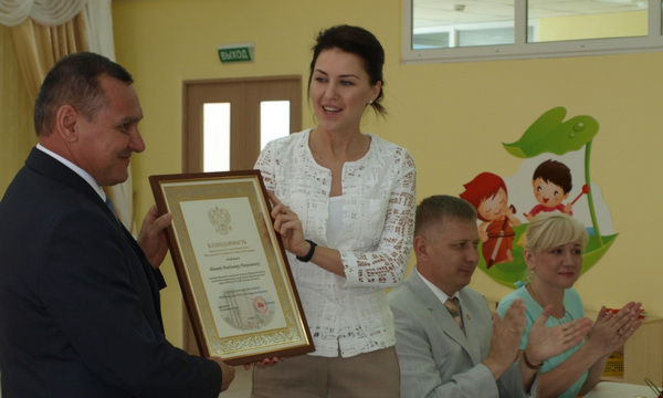 Депутат вручила министру образования и молодежной политики Чувашии Владимиру Иванову – региональному координатору партийного проекта «Детские сады – детям» - Благодарность Председателя Государственной Думы за активное участие в модернизации отрасли дошкольного образования по итогам 2013 года.