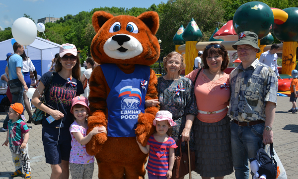 Присоединились к участникам мероприятия и плюшевые символы Хабаровского края – амурский тигр и бурый медведь, которые пользовались огромной популярностью у всех горожан и в завершение праздничного дня стали настоящими «звездами» социальных сетей, ведь всего в яркой акции «Триколор» поучаствовало более 1000 хабаровчан.