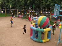 Было очень интересно и весело. Ребята катались на самокатах, прыгали на мячах, дрались мешками, принимали участие в эстафетах и других интересных конкурсах.