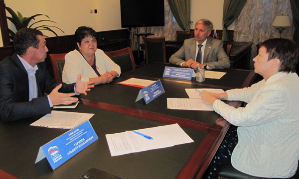 Представитель АНО «Объединение предпринимателей Советского района г.Уфы»Ольга Мурзагулова обратилась к депутату с предложением о создании в Уфе предприятия бытового обслуживания, где могли бы трудиться и обслуживаться инвалиды. Этот проект не требует финансовых вложений от республики и города Уфы, и может быть реализован предпринимателями за счет собственных средств. Но для этого необходимо выделение земельного участка и согласование строительства здания КБО. Рафаэль Марданшин пообещал оказать содействие в реализации этого проекта, и обратиться к республиканским властям с просьбой поддержать данную инициативу.