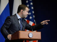 Медведев назвал мужественным и сложным решение президента США Барака Обамы отказаться создавать третий позиционный район ПРО в Восточной Европе. Прежняя американская администрация во главе с Джорджем Бушем-младшим планировала разместить 10 противоракет в Польше и радар в Чехии. Москва считала появление таких систем угрозой национальной безопасности России. В случае реализации американцами своих планов Медведев пообещал, как одну из превентивных мер, разместить в Калининградской области тактические ракетные комплексы «Искандер».