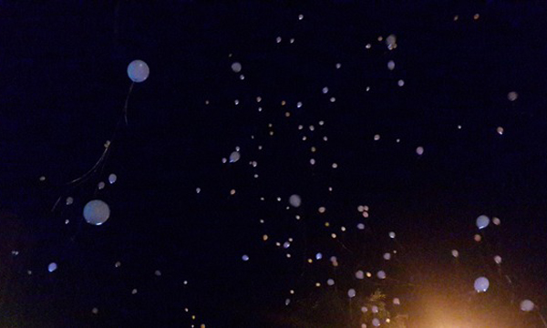 В полночь солист Сергей Малых исполнил песню «Журавли». Участники акции запустили в небо 500 светодиодных шаров, символизирующие дату памяти и скорби - 73-ю годовщину со дня начала Великой Отечественной войны.