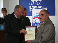 Партийный проект "Лучший детский тренер страны" вышел на финишную прямую – подведены итоги регионального этапа проекта по всем номинациям. В зале заседаний исполкома Кабардино-Балкарского регионального отделения партии "Единая Россия" состоялась церемония награждения победителей, главными участниками которой стали тренеры детско-юношеских спортивных школ, учителя физической культуры общеобразовательных школ, педагоги дополнительного образования и тренеры-общественники из городов и районов республики. Открывая мероприятие, Секретарь Политического совета регионального отделения "Единой России" Борис Жеруков подчеркнул, что партия уделяет большое внимание развитию детского и молодежного спорта, и рассказал о реализации партийного проекта "Лучший детский тренер страны" в Кабардино-Балкарии. – С целью привлечения внимания к работе детских тренеров, приобщающих подрастающее поколение к занятиям физической культурой и спортом, к здоровому образу жизни и был объявлен данный проект. Мы выражаем сердечную благодарность всем участникам этого большого и важного общего дела, – отметил он. Из одиннадцати участников в список номинантов, направленный в Москву на рассмотрение Федерального Экспертного Совета, вошли четыре тренера. В номинации "Тренер чемпиона" победил Николай Закураев – мастер спорта СССР по вольной и классической борьбе, мастер спорта России по национальной борьбе, старший тренер по вольной борьбе ДЮСШ г. Баксана; в номинации "Народный тренер" – Мухамед Туганов – директор МОУ ДОД ДЮСШ с. Лечинкай Чегемского района; лучшим школьным тренером стал Эдуард Лажараев из селения Урожайное Терского района; в номинации "Преодоление" победа досталась Александру Ипатову – тренеру-преподавателю СДЮСШОР по легкой атлетике г. Прохладного. В торжественной обстановке победителям регионального этапа проекта были вручены дипломы и денежные премии, учрежденные Региональным Фондом поддержки партии "Единая Россия". Кроме этого, решением Регионального Экспертного Совета, еще четыре тренера были признаны победителями регионального уровня. Они так же были награждены дипломами и денежными премиями. Никто не остался без внимания. Подтверждение этому – три поощрительных денежных приза за участие в проекте и сувениры с логотипом "Единой России" всем присутствующим. На протяжении всей церемонии в зале царила атмосфера радости и гордости за людей по настоящему любящих свой труд. В завершении, Региональный координатор проекта "Лучший детский тренер страны", член Политического совета партии "Единая Россия", директор Нальчикского филиала страховой компании "Югория" Аслан Бесланеев выразил надежду на то, что "… наши тренера составят достойную конкуренцию своим коллегам из других регионов России на Федеральном этапе проекта, а работа тренера станет в нашей стране по-настоящему уважаемой и почетной!...". В церемонии награждения приняли участие спортсмены детских юношеских школ Нальчика, сотрудники Регионального исполкома партии "Единая Россия", представители печатных и электронных республиканских СМИ.