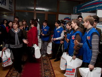 15 апреля Московское городское отделение «Молодой Гвардии Единой России» провело Фестиваль военно-патриотической песни, посвященный 65-летию Победы в Великой Отечественной войне. С песнями военных лет выступили лучшие окружные молодежные творческие коллективы Москвы.Песнями своей молодости смогли насладиться ветераны даже из самых отдаленных районов Москвы, на Кутузовский проспект их доставили комфортабельные автобусы, в пути их сопровождали молодогвардейцы, готовые оказать помощь и, следившие за тем, чтобы всем было удобно. Ребята сделали все, чтобы этот вечер стал для ветеранов настоящим праздником, ни один из дорогих гостей не был оставлен без внимания. Перед концертом за праздничным чаепитием ветераны рассказывали молодежи о временах своей боевой молодости.Концерт начался с поздравлений официальных лиц:Депутат Московской городской Думы Людмила Стебенкова:Мы очень счастливы, что вы сегодня собрались здесь. Когда ребята сказали, что они хотят провести фестиваль военной песни, пригласить сюда всех вас, мы сразу поддержали эту идею. Мы хотим с вами пройти все основные вехи истории Великой Отечественной войны, вспомнить наши самые главные победы. Мы хотим исполнить для вас те песни, которые были написаны во время войны и после ее окончания. Это подарок вам от наших ребят. Депутат Московской городской Думы, и.о. начальника Московского городского штаба ВОО «Молодая Гвардия Единой России» Михаил Тишин:Мы искренне хотим, чтобы этот концерт вам понравился. Наши ребята подошли к его подготовке с большой ответственностью, они буквально пропустили все эти песни через себя, так как они помнят о вас, о вашем подвиге и хотят, чтобы их сегодняшнее выступление вам действительно понравилось. Концерт был разделен на несколько тематических блоков:·Тематическийблок,посвященныйМосковскойБитве;·Тематическийблок,посвященныйСталинградскойБитве;·Тематическийблок,посвященныйКурскойБитве;·Тематическийблок,посвященныйосвобождениюЕвропы;·Тематическийблок,посвященныйПобеде.