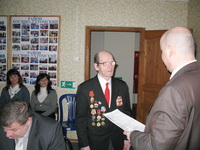 Секретарь политсовета районной партийной организации Роман Балдуев, поздравляя Александра Васильевича Романькова с вступлением в ряды Партии, поблагодарил его за его подвиги в годы войны, за его послевоенный труд и за то, что он и сейчас продолжает активно участвовать в общественной жизни района и подарил ему книгу «Слово солдата Победы».
