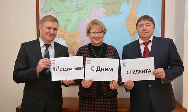 Хабаровские партийцы во главе с секретарем регионального отделения «Единой России» Сергеем Луговским в понедельник, 25 января, по-молодежному поздравили студентов-дальневосточников с Днем российского студенчества.