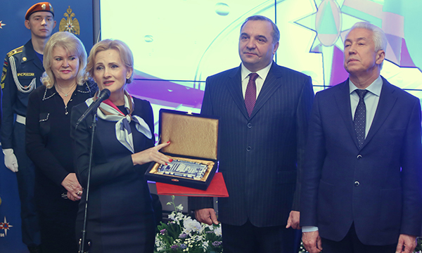 Яровая вручила главе МЧС Владимиру Пучкову памятный подарок и высказала надежду, что через 25, 50 и 100 лет останется лидером в защите жизни и безопасности граждан России.