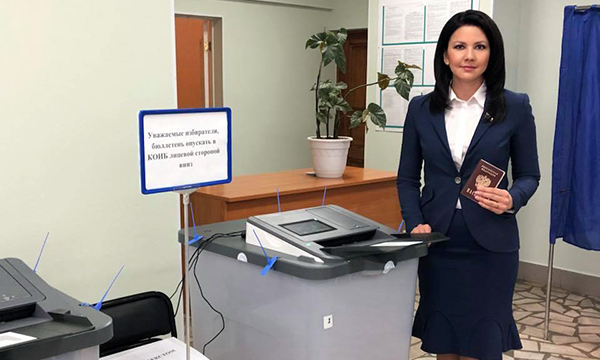 Депутат Государственной Думы Инга Юмашева проголосовала на выборах Президента России на избирательном участке № 363 в Уфе.