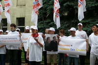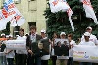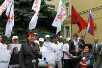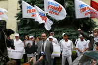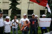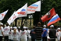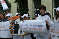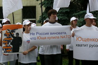 Среди тех, кто сегодня пришел на наш пикет, есть те, у кого имеются родственники на Украине, есть те, кто сам родился на Украине. У нас много друзей на Украине. Мы хотим доброжелательных, добрососедских отношений с этим государством. А те русофобские агрессивные высказывания, которые допускают оранжевые правители Украины, скорее и приведут к развалу украинского государства. Поэтому мы говорим: Ющенко, хватит русофобии!
