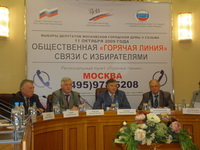 В ходе представления Московского пункта общественной «Горячей линии» связи с избирателями выступили: член Общественной палаты Российской Федерации, председатель Координационного совета по защите прав избирателей А.С.Пржездомский, Председатель Московской городской избирательной комиссии В.П.Горбунов, член Общественной палаты Российской Федерации, член Координационного совета по защите избирательных прав граждан М.А.Большакова, член Центральной избирательной комиссии Российской Федерации Г.И.Райков, первый заместитель руководителя Департамента территориальных органов исполнительной власти г.Москвы Ю.А.Ермолов, член Координационного совета по защите избирательных прав граждан, ответственный секретарь Общественного комитета «За честные выборы!»