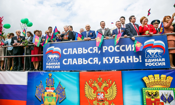 Возглавил колонну исполняющий обязанности главы региона Вениамин Кондратьев. Колонна, украшенная флагами, шарами, транспарантами, под звуки духового оркестра проследовала по улице Красной кубанской столицы. Вместе с депутатами краевого парламента и городской Думы в шествии приняли участие члены Краснодарского регионального отделения «Единой России», а после поприветствовали участников на площади перед зданием краевого парламента.