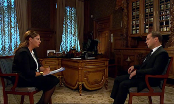 Председатель правительства России Дмитрий Медведев дал интервью автору программы «Позиция» грузинской телекомпании «Rustavi 2» Нино Шубладзе в преддверии пятой годовщины войны в Южной Осетии