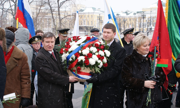 Моряки-подводники, почётные гости и воспитанники военно-патриотических клубов возложили венки к Вечному огню у могилы Неизвестного солдата в Александровском саду. Затем в Культурном центре «Арбат» прошла пресс-конференция.