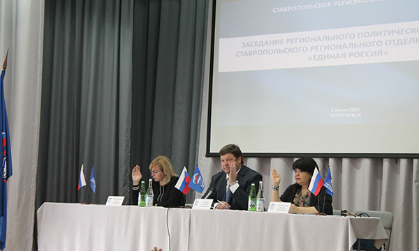 Политсовет принял решение о прекращении деятельности двух местных отделений (Георгиевского городского и Георгиевского районного) и создании одного – местного отделения Всероссийской политической партии «Единая Россия» Георгиевского городского округа Ставропольского края. Такое преобразование вызвано тем, что вступил в силу закон Ставропольского края об объединении Георгиевского муниципального района и города Георгиевска в Георгиевский городской округ.