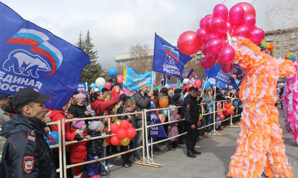 Несколько тысяч демонстрантов вышли отмечать 1 мая в центр Новосибирска. Колонна из активистов партии «Единая Россия», депутатов, руководства города и области, представителей ТОСов, трудовых коллективов, и других участников праздника начала формироваться в 10 утра у здания областного правительства.