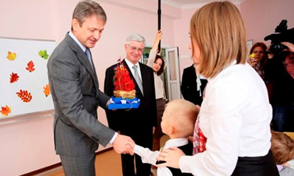 По случаю открытия губернатор вручил символический ключ от детского сада его заведующей.
