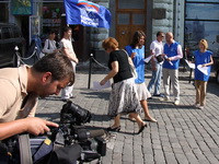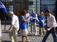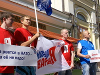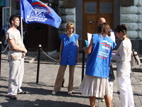 2, 3, 4 июля (пятница, суббота и воскресенье)Московские молодогвардейцы совместно с представителями Партии «ЕДИНАЯ РОССИЯ» провели серию пикетов против антироссийской политики врио президента Молдавии Михая Гимпу. Московские Молодогвардейцы рассматривают указ Михая Гимпу об объявлении в Молдавии 28 июня 'Днем советской оккупации' как политическую провокацию, направленную на ухудшение российско-молдавских отношений. Это не что иное, как попытка исказить историю и оправдать несостоятельность политики молдавских властей. Указ Гимпу - это очередная попытка отвлечь внимание от реальных проблем Молдавии, население которой в результате некомпетентности руководства оказалось в условиях тяжелейшего социально-экономического кризиса, что может создать в обществе ситуацию конфронтации и неуправляемости. 'Мы проводим сегодня пикеты около посольства Молдавии, на Пушкинской и Арбатской площадях, рядом с метро 'Парк Культуры' и на Театральной площади у памятника Карлу Марксу', - заявила первый заместитель руководителя исполкома отделения партии 'Единая Россия' в ЦАО Москвы Ирина Топорова. По ее словам, представители молодежного крыла 'Единой России' раздают прохожим двусторонние листовки, с одной стороны которых размещена информация о действиях властей Молдавии, с другой - призыв к гражданам не оставаться в стороне и бойкотировать молдавскую продукцию. Общественный порядок в тех местах, где проводятся пикеты, охраняют наряды милиции. 'В каждом месте у нас по три пикетирующих. В частности, на Пушкинской площади, где я сейчас нахожусь, около восьми милиционеров, рядом с Молдавским посольством их побольше', - сказала И.Топорова.
