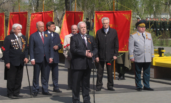 В военно-мемориальном комплексе поселка Черемушки Попов вместе с членом президиума регионального политсовета «Единой России», губернатором Виктором Назаровым, ветеранами Великой Отечественной войны и военнослужащими Омского гарнизона возложил венки к Огню Памяти.