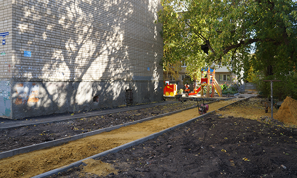 Первой точкой стал общий двор домов № 276 по улице Посадского и дома № 96 по улице Железнодорожная. Совсем недавно в рамках проекта «Детские площадки» «Единой России» здесь был установлен . Сейчас идет укладка асфальтового покрытия.