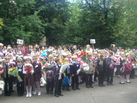Лариса Лужина: «Я хочу выразить огромную благодарность всем учителям и преподавателям за их важный и благородный труд, за их бесконечную заботу об учениках. Счастья, вам, здоровья и много-много сил!». Об успехах демографической политики Москвы можно было судить по густо заполненному учениками школьному двору.
