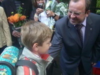Они пожелали ребятам отличной учебы, а учителям успехов в их нелегкой работе. Виктор Селиверстов: «Сегодня очень важный и волнующий день – день начала нового учебного года. Вы стоите на пороге новых знаний. Желаю вам, чтобы год был успешным и принес вам только высокие оценки!» Особый праздник сегодня у Ларисы Лужиной: в первый раз в первый класс пошел ее внук Матвей.
