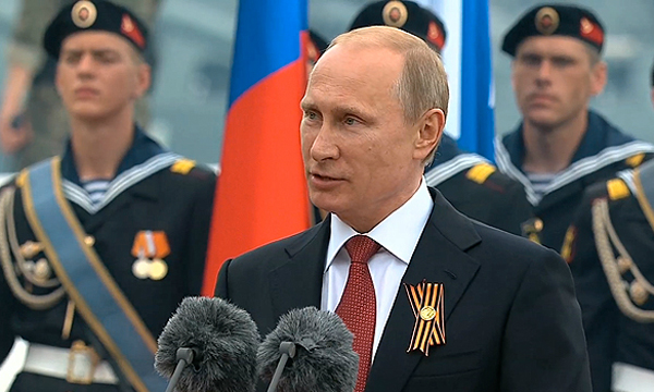 «Рад быть здесь, в героическом Севастополе в этот священный день, вместе с вами отмечать главный праздник нашей страны. Подвиг поколения, разгромившего нацизм, всегда будет примером мужества, доблести и несгибаемой силы воли, примером беззаветного служения Отечеству. Мы держим равнение на вас, дорогие ветераны, и в том, что Крым и Севастополь возвратились в родную страну, есть ваш огромный нравственный вклад», — сказал Путин, выступая на параде Черноморского флота и ВВС РФ в Севастополе.