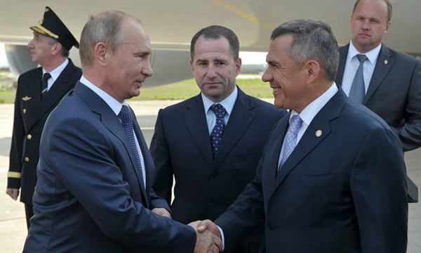 Как передает ИТАР-ТАСС, пояснения по маршруту давал Минтимер Шаймиев, возглавляющий попечительский совет республиканского фонда «Возрождение» памятников истории и культуры Татарстана. Главу государства также сопровождал действующий президент республики Рустам Минниханов.