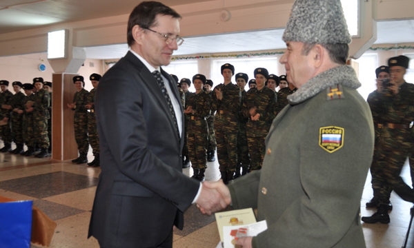 Накануне Дня защитника Отечества губернатор Самарской области Николай Меркушкин через региональный исполком Партии Оренбургского регионального отделения «Единая Россия» передал участникам Парада памятные медали. Вручал воспитанника кадетского корпуса памятные знаки руководитель регионального исполкома партии «Единая Россия» Александр Мостовенко.
