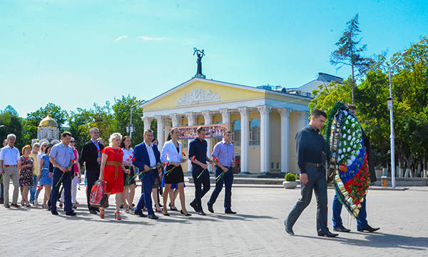 На рассвете участники акции прошли к Соборной площади, чтобы возложить цветы к монументу «Скорбящая мать». У Вечного огня отслужили панихиду по павшим защитникам Отечества.