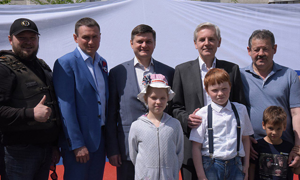 Официальная часть завершилась торжественным исполнением гимна России, после чего заработали игровые площадки, организованные в рамках регионального партийного проекта «Создавая будущее» под руководством депутата областной Думы Елены Кашкаровой. У баннера со сказочными героями собрались самые маленькие гости праздника. Они трудились над раскрашиванием картинок на баннере и рисовали мелками на асфальте.