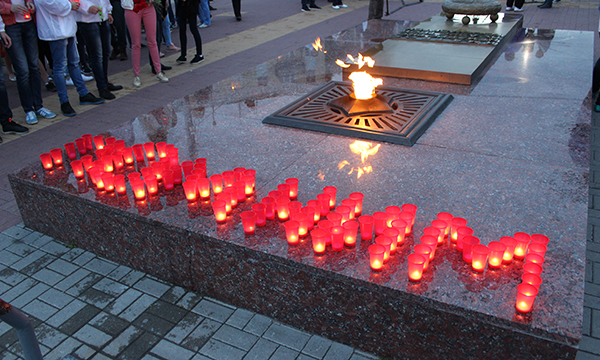 В Калуге прошла мемориальная акция «Свеча Памяти». В самом начале акции на площади транслировалась музыка военных лет, а возле Вечного огня выложили свечами слово «Память», которое стало символом мероприятия.