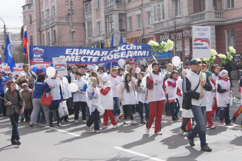 Около тысячи «единороссов», в числе которых депутаты Государственной Думы ФС РФ, Законодательного Собрания Красноярского края, Красноярского городского Совета, лидеры партии в крае, представители общественных организаций прошли в составе общей колонны от гостиницы «Октябрьская» до площади Революции, где состоялся митинг с участием лидеров профсоюзных и общественных организаций, политических партий.