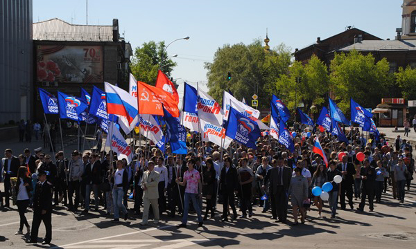 Затем на Соборной площади были сформированы колонны, в которых шли руководители города и области, представители липецкого регионального отделения «Единой России», других политических партий, общественных организаций, студенты, школьники. Многие горожане пришли на праздник семьями.