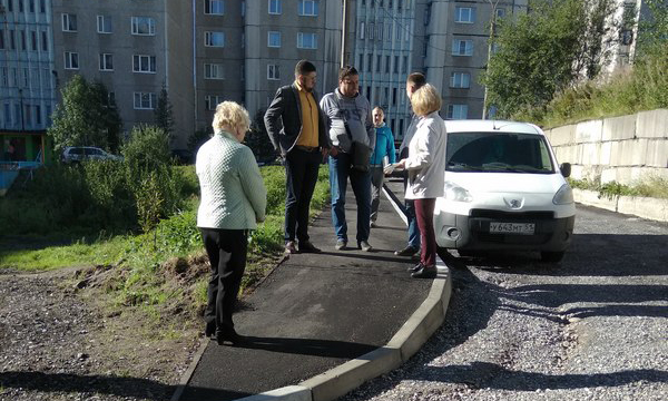 В Мурманске активисты проверили ход работ по благоустройству в трех дворах