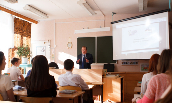 Слушателями урока стали ученики 8 «Е» класса школы. Парламентарий в самом начале занятий объяснил важность экологии в современном мире.