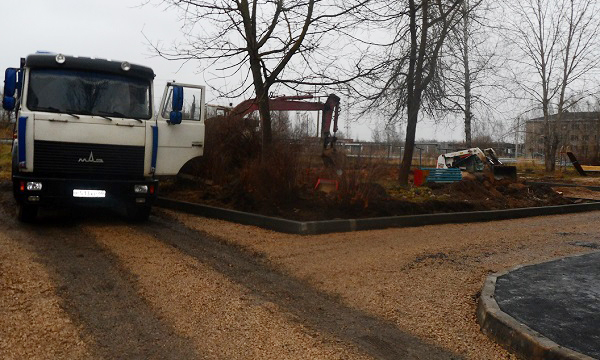 В рамках партпроекта «Городская среда» в Пыталово благоустраивают двор у городской бани