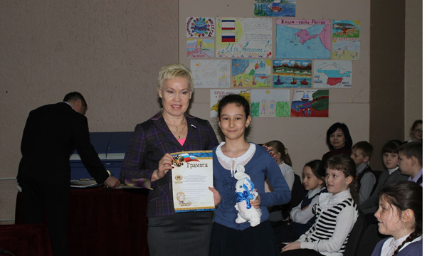 В завершении урока парламентарий отметила несколько сочинений, написанных учащимися школы № 44 на тему Крыма, и несколько рисунков и плакатов, нарисованных учащимися начальной школы. Лучшие работы были удостоены награды - памятные сувениры Сочинской Олимпиады 2014, статуэтки, а также благодарственные письма Государственной Думы Федерального Собрания Российской Федерации. Взамен Рима Баталова попросила ребят передать свои работы для оформления выставки детских творческих работ и сочинений, которая пройдет в Москве в здании Государственной Думы Федерального Собрания Российской Федерации накануне празднования 1 мая 2014 года.