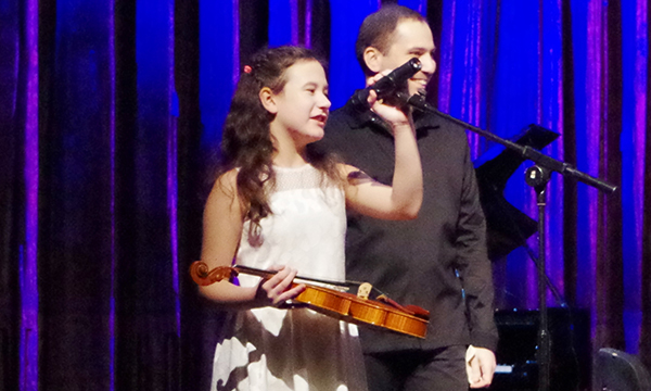 Заслуженый артист России Дмитрий Коган вручил юной тулячке Екатерине Щадиловой скрипку. Ценный подарок изготовил знаменитый скрипичный мастер Игорь Улицкий.